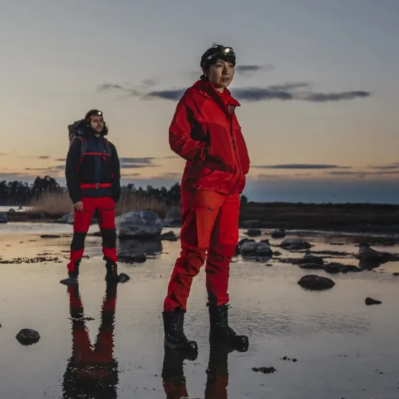 Materiaalit ovat yhdistelmä kestävästä, tuulenpitävästä ja mekanisesti venyvästä Lundhags PolyCotton Stretch (LPC) -kankaasta, jossa on erittäin venyviä Schoeller® Dry Skin -paneeleja takana, haarassa ja polvissa.