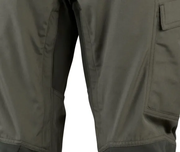 Pohkeiden sivuilla olevat tuuletusventilaatiot viilentävät lämpimissä olosuhteissa. Vyötärö on säädettävissä tarrakiristyksellä, ja housuissa on etutaskut sekä läpällä suljettavat reisitaskut.