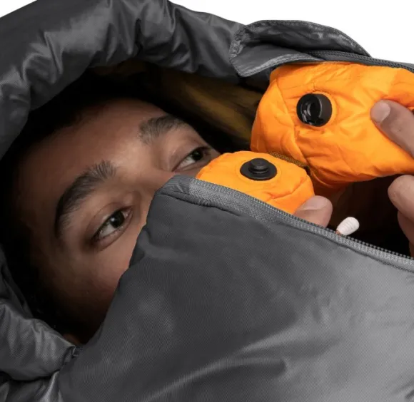 Makuupussissa on keskellä sijaitseva vetoketju, joka voidaan avata molemmista suunnista, jotta voit helposti säätää lämpötilaa. Vetoketju on eristetty, jotta kylmän ei pääse makuupussin sisään. Pään ympärillä makuupussissa on pehmeä ja mukava materiaali, joka myös vähentää melua ulkopuolelta. Makuupussin kaulus sulkeutuu ja avautuu helposti magneetin avulla ja sitä voidaan säätää kiristysnauhalla. Sisällä on tasku, johon voit helposti laittaa arvoesineesi ja elektroniikkaa. Mukana myös silmälaput ja korvatulpat erityisen hyvän yöunen saamiseksi.