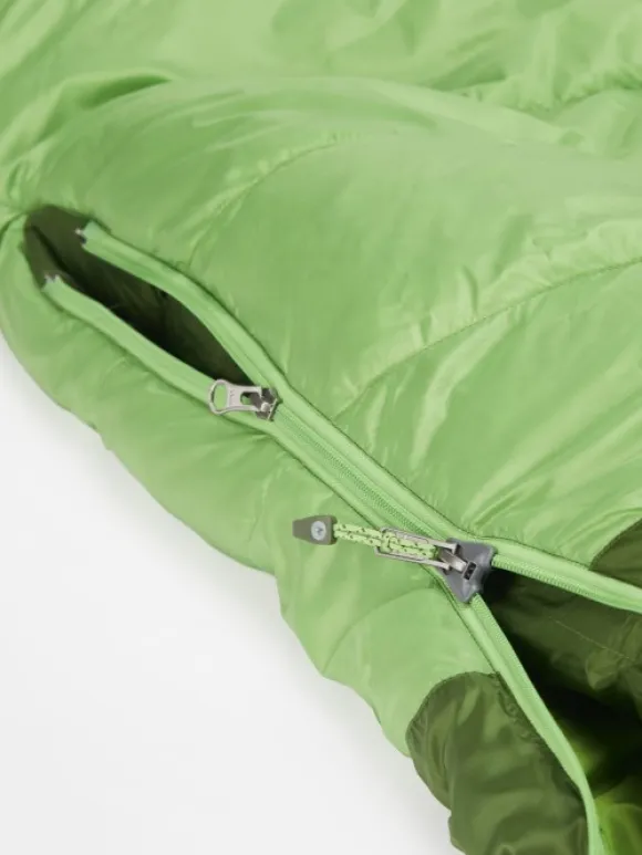 Marmot tunnetaan laadukkaista makuupusseistaan, eikä tämä pussi ole poikkeus. Saat hyvin täytetyt kanavat ilman lämpövuotoa, hyvin muotoillun hupun, erityisesti vuoratun jalkatilan maksimaalisen eristyksen saavuttamiseksi. Makuupussi toimitetaan sekä kompressiopussilla että suuremmalla verkkosäilytyspussilla. Kaikki makuupussit tulee säilyttää puristamattomina säilytyspussissa matkojen välillä. Tällä tavalla untuva säilyttää laatunsa ja eristyskykynsä erittäin pitkään.
