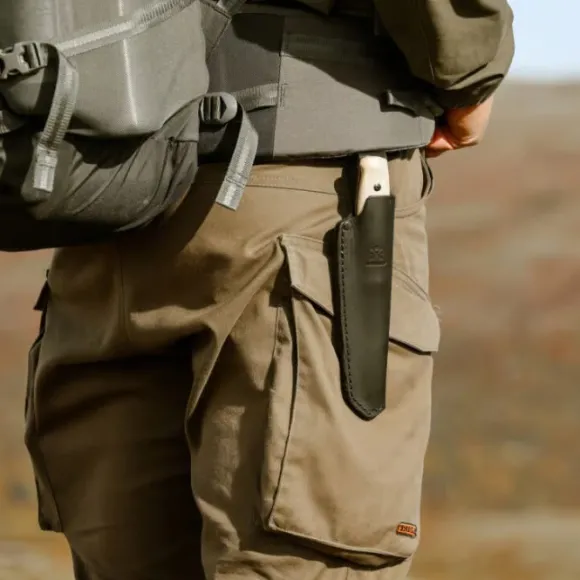 Yhdistelmä vahvaa kahvaa, joka on valmistettu huolella valitusta vaaleasta eurooppalaisesta FSC®-sertifioidusta saarnipuusta, ja 3,2 mm paksua mustaa ruotsalaisesta ruostumattomasta teräksestä valmistettua terää tekee veitsestä valmiin raskaisiin tehtäviin erämaassa.