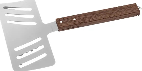 Muurikka Leveä paistinlasta tekee ruoan kääntämisestä helppoa. Tämä paistinlasta on valmistettu ruostumattomasta teräksestä ja siinä on ergonominen D-muotoinen kahva, joka on valmistettu FSC-sertifioidusta savustetusta saarnista. Kestävä, kova ja kaunis puulaji, joka on lämpökäsitelty pitkän käyttöiän varmistamiseksi.