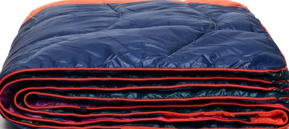 Materiaali tiivistyy pieneen siistiin pakkaukseen ja saa tilavuutensa takaisin erittäin nopeasti. Kulmissa on Paracord-lenkit, kosteutta ja likaa hylkivä ulkopinta ja älykäs pidike, jolla peitto on helppo napsauttaa olkapäille, joten tämä peitto on optimoitu iltanuotiolle.