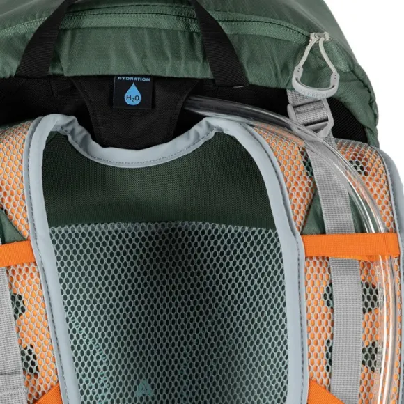 Reppuun on lisätty kaksi PowerMesh™-taskua repun sivuilla, jotka mahtuvat helposti kuhunkin litran vesipulloon, kun taas yläkompressiohihna toimii myös vaellussauvojen pidikkeenä.