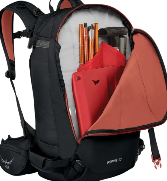 Sporis 30:llä on pääsy päälokeroon selkäpaneelin kautta. Siinä on omistettu lokero lapioille ja sondille, joka on helppo ja nopea saavuttaa, mikä on tärkeää lumivyöryetsinnöissä, joissa jokainen sekunti on ratkaiseva. Repun yläosasta pääsee myös pienempään lokeroon naarmuttamattomalla vuorilla esimerkiksi laseille tai elektroniikalle.