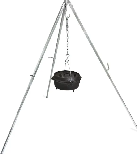 Kolmijalkaan on helppo ja turvallinen kiinnittää grillausritilä tai Petromax Dutch Oven –pata. Säädettävän ketjun avulla on helppo muuttaa ruoanlaittovälineiden etäisyyttä tulesta.