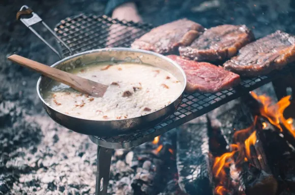 Aeril Large on kestävä ja monikäyttöinen Primus-lisävaruste, joka mahdollistaa ruoanlaittamisen avotulella. Tukevaa ja taitettavaa ruostumattomasta teräksestä valmistettua jalustaa täydentää mukana toimitettu kolmion muotoinen ritilä, joka tarjoaa erilaisia lämmitysmahdollisuuksia. Voit säätää ritilän korkeutta niin, että voit nopeasti ja nopeasti nostaa tai laskea lämpötilaa ruokaa laittaessasi. Aeril tarjoaa grillausmahdollisuuden, mutta ruoanlaitto avotulella kattiloiden ja pannujen kera onnistuu myös.