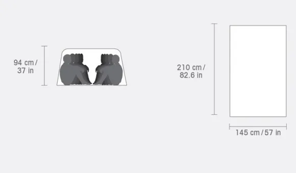 Rab Group Shelter 8-10 -hätäsuojan sisään mahtuu jopa 10 henkilöä, ja sitä voi käyttää myrskysuojana taikka taukosuojana huonolla säällä. Suoja on valmistettu kevyestä veden- ja tuulenpitävästä polyesterikankaasta. Siinä on ilmanvaihtoikkuna sekä paikat hiihto- tai vaellussauvoille, joita voi käyttää suojan tukena.