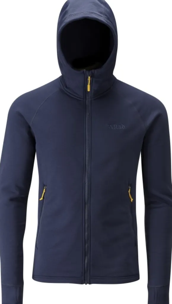 Tämä takki on teknisempi fleecevaihtoehto Rabin valikoimasta, sillä se kestää säätä ja tuulta uloimpana kerroksena käytettynä, mutta toimii loistavasti myös aluskerroksena. Takissa on huomaamattomat flatlock-saumat, ja vetoketjussa on mukavuutta lisäävä leukasuoja. Siinä on tiiviisti istuva huppu sekä peukalolenkit hihansuissa, joten lämpö pysyy tiiviisti puseron sisäpuolella.