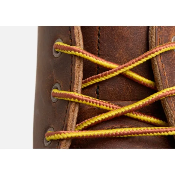 Kenkä on valmistettu Red Wingin copper rough and tough -nahasta, joka on kestävä pull-up-nahka antiikkisella pinnalla. Se on suunniteltu näyttämään käytetyltä ja patinoituneelta jo ensimmäisestä käyttökerrasta lähtien. Tähän täysnahkaan ei ole lisätty peittäviä pigmenttejä, joten sen luonnollinen kauneus pääsee esiin ja tekee jokaisesta parista ainutlaatuisen.