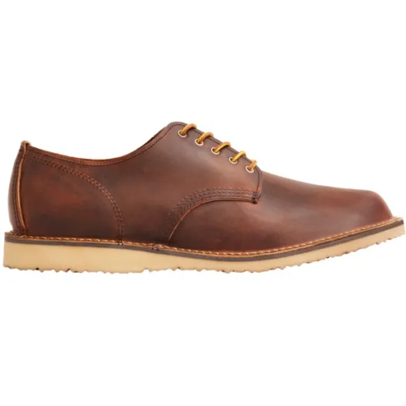 Kenkä on valmistettu perinteisellä stitchdown-rakenteella, jossa päällinen taitetaan ulos välipohjan päälle ja ommellaan yhteen ulkopohjan kanssa, mikä takaa kestävän ja vakaan kengän. Kuten kaikki Red Wing Heritage -mallit, Weekender Oxford on täysin uudelleensoitettava, mikä takaa pitkän käyttöiän ja kestävyyden.