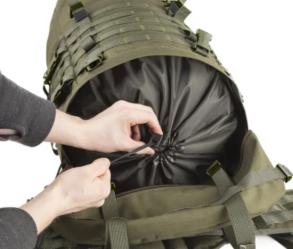 Reppupussin alaosaan pääsee kätevästi käsiksi vetoketjujen avulla. Tukirangan taskuun voi halutessaan laittaa esimerkiksi juomarakon ja rinkassa on ulostulo juomarakon letkulle. Rinkan saa helposti kiristettyä tiukaksi paketiksi kyljistä löytyvien kiristysnauhojen avulla ja rinkan kattavaan MOLLE -kujastoon saa tarvittaessa kiinnitettyä erikseen myytäviä lisätaskuja, joiden avulla voit tarvittaessa kätevästi kasvattaa rinkan tilavuutta ja taskujen määrää.