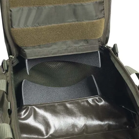 Sisätilaa voi organisoida monin tavoin, sillä laukku on yhteensopiva tarranauhakiinnitteisten tarvikkeiden kanssa.