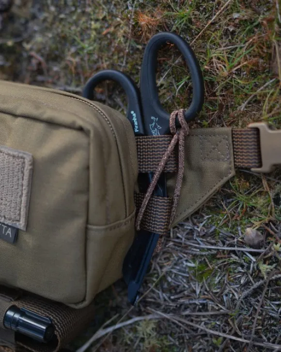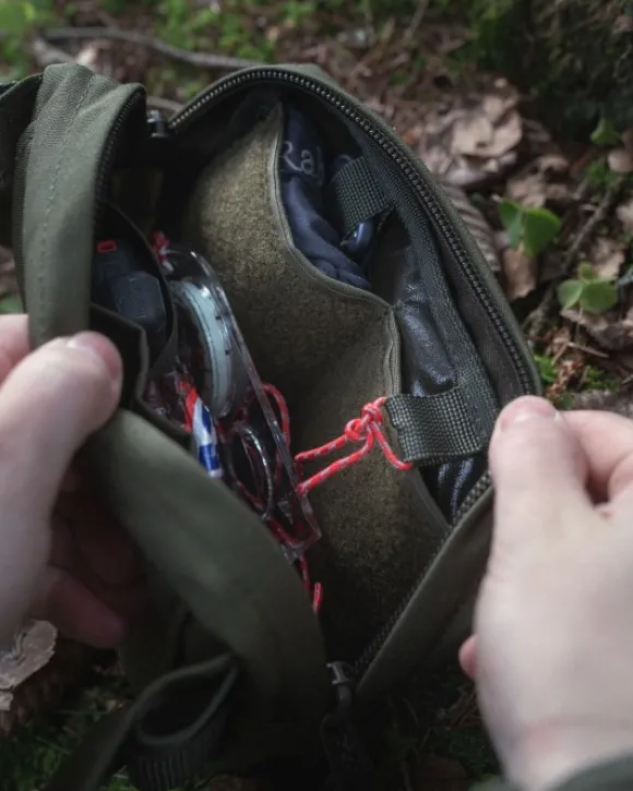 Sisällä laukussa on useita vaihtoehtoja varusteiden järjestämiseksi. Saat joustavia hihnalenkkejä eri kokoisina, litteitä taskuja, solmulenkit ja lisälenkkejä varusteiden kiinnittämiseen.