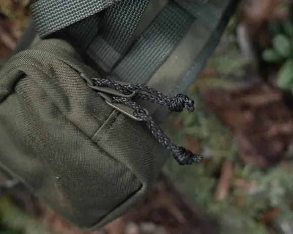 Säilytyspussissa on vetoketju ja kaksi ei-lukittuvaa vedintä vetonarulenkeillä. Takapuolella on Savottan PALS-kiinnitysjärjestelmä taittuvilla läpillä. Kiinnitysremmit voidaan myös punoa 45–50 mm leveisiin vyönlenkkeihin.