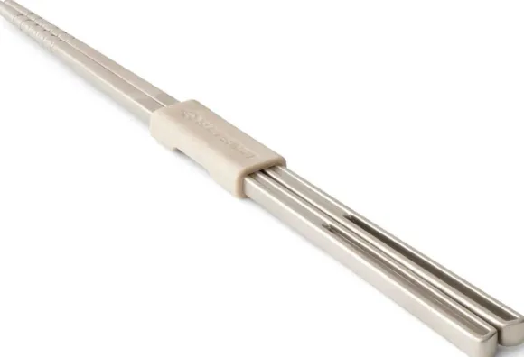 Mukana tuleva silikoninen pidike pitää puikot yhdessä ja toimii samalla telineenä. Syömäpuikot kestävät korroosiota, ruostetta ja tahroja – ja ovat täydellinen valinta retkikeittiöön, jossa kestävyys ja käytännöllisyys ovat avainasemassa.