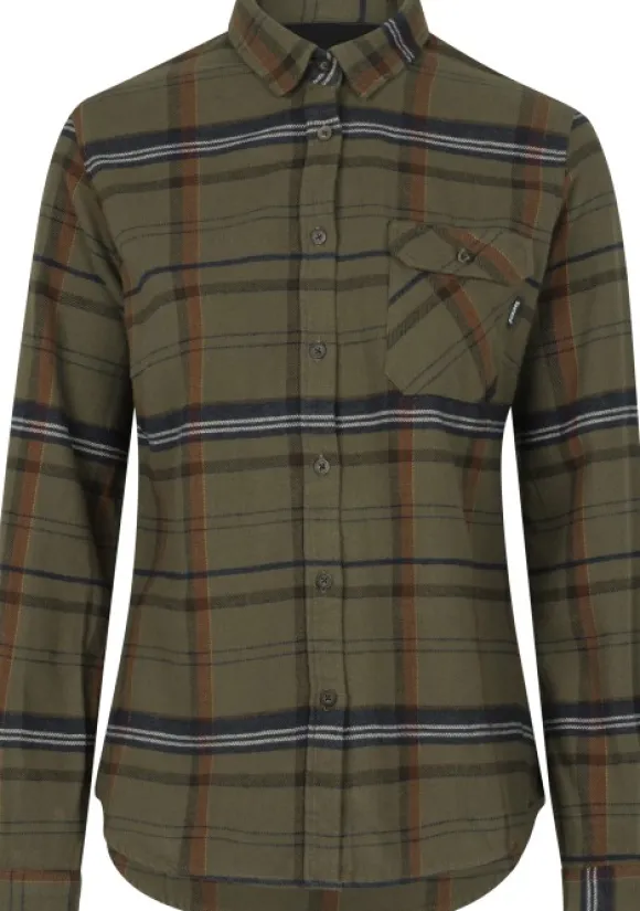 Seeland Skye flanellipaita naisille on valmistettu pehmeästä, harjatusta puuvillasta ja siinä on selkärypytys liikkumavaran lisäämiseksi. Paidassa on logopainetut napit, säädettävät hihansuut sekä rintatasku kannella ja nappikiinnityksellä. Hillityt värit antavat monipuolisen tyylin.