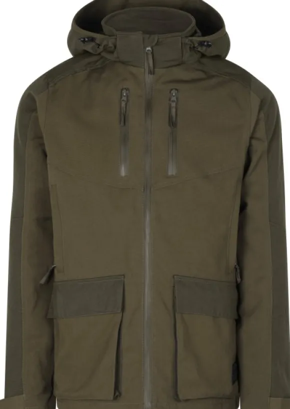 Vedenpitävä takki on varustettu irrotettavalla ja säädettävällä hupulla, vedenkestävillä taskuilla ja riistavarastolla – täydellinen ajometsästykseen. Takissa on myös kosteusvaikutuksia estävä vuori ja säädettävä helma, joka takaa mukavuuden ja kestävyuden.