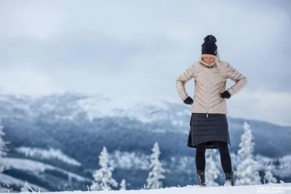 Aaltoilevat saumat antavat hameelle sen erikoisen luonteen. Malli on hieman pidempi takaa ja lyhyempi edestä joustavuuden ja hameen erilaisen leikkauksen vuoksi. Skhoop Short Down-hame on täydellinen pitämään sinut lämpimänä talviaktiviteeteissa.