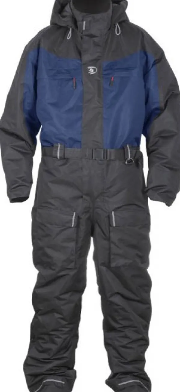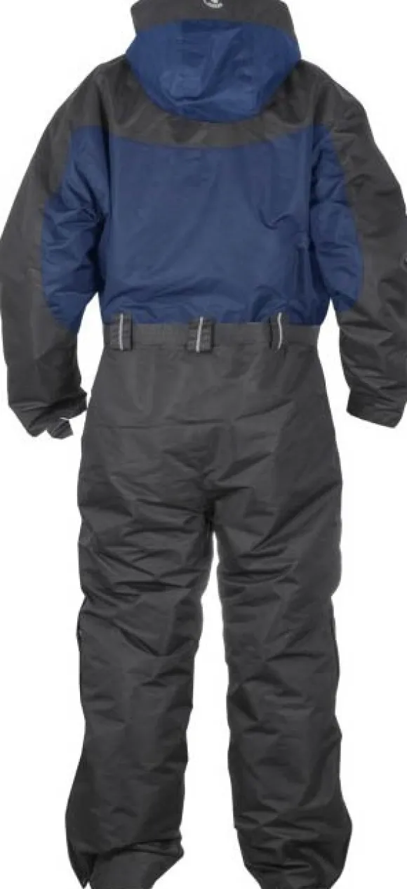 Useat heijastimet lisäävät turvallisuutta pimeällä. Ranteissa on helppokäyttöiset, lämpimät resorit, ja haalarissa on laadukas YKK-vetoketju. Leveissä lahkeissa on pitkät vetoketjut ja vyötäröllä kiristysvyö. Vyötäröllä olevaan D-lenkkiin voi kiinnittää esimerkiksi hätäkatkaisimen moottorikelkkaan ja veneeseen. Lisäksi haalarissa on runsaasti taskuja tärkeille tavaroille. Siniset tehostevärit edessä ja takana.