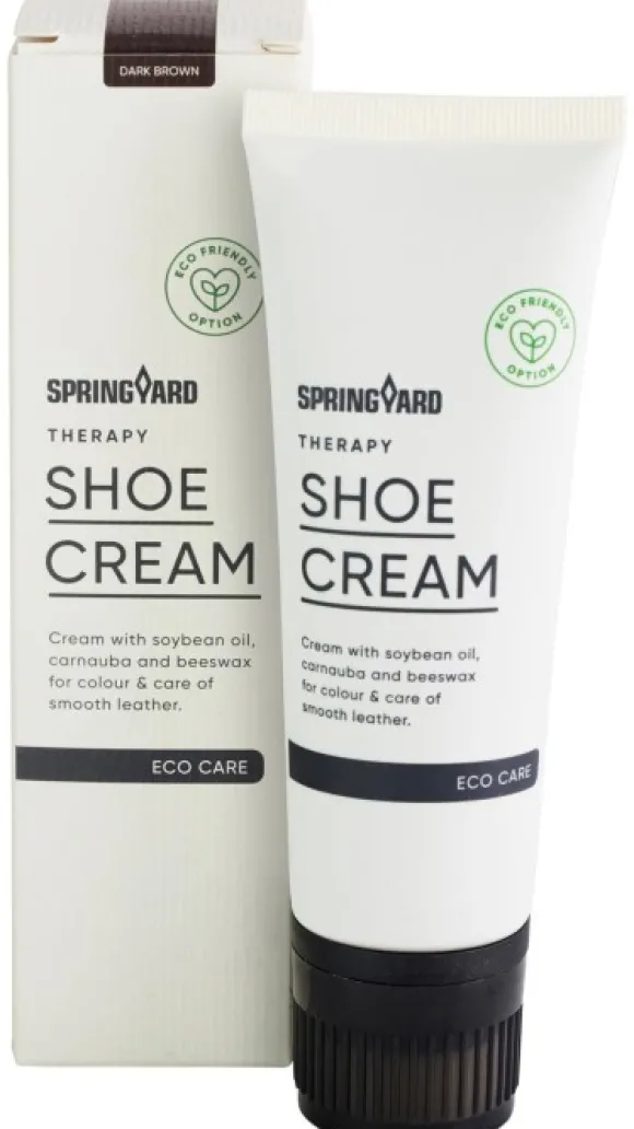 Springyard Shoe Cream on vesipohjainen kenkävoide, joka on täysin liuottimista vapaa. Se antaa syvän väripigmentin sekä kevyen suojan vettä ja likaa vastaan.