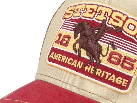 Klassinen trucker-lippis Stetsonilta. Lippiksen lipan polyesterikangas on käsitelty samettimaisen, hieman epätasaisen pinnan aikaansaamiseksi, joka muistuttaa mokkanahkaa.