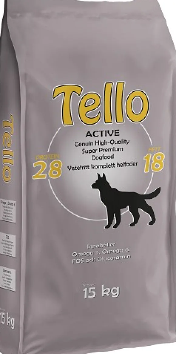 Tello Active on suosittu monipuolinen koiranruoka, joka sopii suuremman rotuisille koirille ja kattaa koirasi päivittäiset ravintotarpeet. Sisältää Omega 3- (EPA/DHA) ja Omega 6 -rasvahappoja.