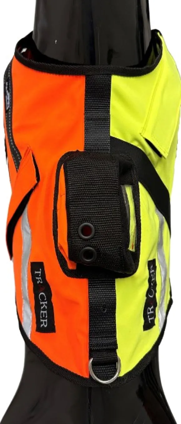 Tracker Sisu -koiraliivin laitetasku on pehmustettu ja koiratutka asetetaan paikoilleen liivin alakautta. Liivissä laitetasku on koiran lapojen kohdalla, jolloin se häiritsee koiraa vähiten. Joustavan rakenteen ansiosta mahdollista käyttää lähes kaikkia koiratutkia!