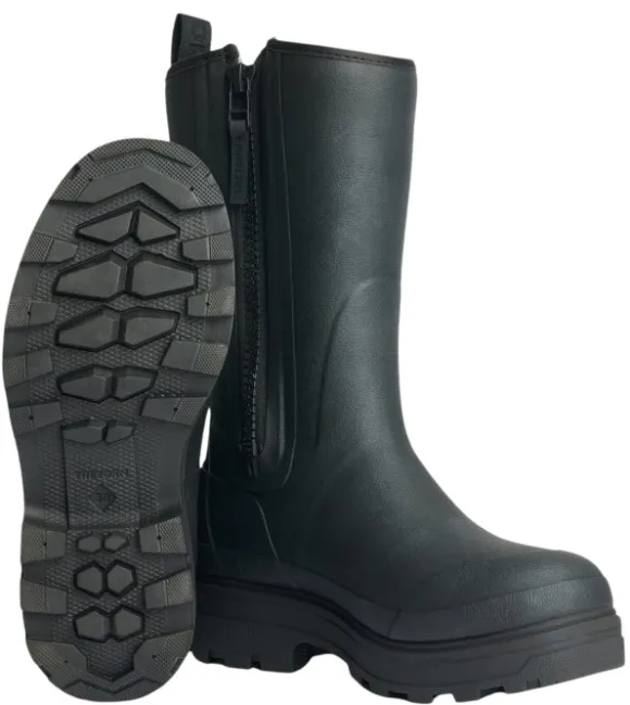 Kumisaapas on valmistettu käsin FSC®-sertifioidusta luonnonkumista ja siinä on vakaa ulkopohja, joka soveltuu hyvin maasto-olosuhteisiin. Käytännöllinen vetoketju sisäpuolella tekee saappaasta helpon pukea ja riisua, mikä tekee siitä mukavan valinnan monenlaisiin talviaktiviteetteihin.