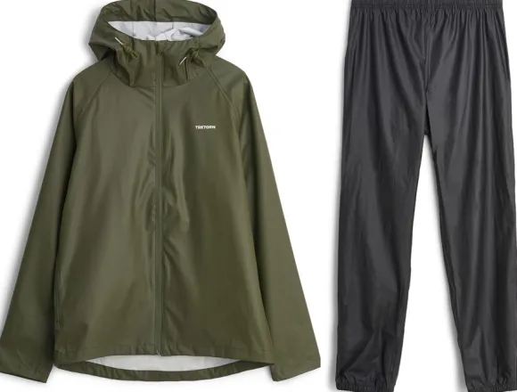 Tretorn Packable Rainset on täydellinen, pakattava sadeasu, joka kulkee mukanasi helposti. Erittäin kevyt takki ja housut valmistettu vedenpitävästä ja PVC-vapaasta PU: sta. Takissa on urheilullinen ja istuva malli, jossa on säädettävä huppu, ilmanvaihto takana ja vettä hylkivä vetoketju edessä. Sadehousuissa on joustava vyötärö ja lahkeenpäät sekä kiristysnauha vyötärönauhan sisäpuolella. Jotta sadesetti voidaan helposti pakata, kun sitä ei tarvita, on sivutasku on suunniteltu pakkauspussiksi. Taitat takin ja housut yksinkertaisesti vain taskuun!