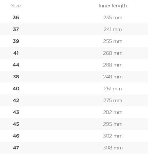 Huom! Pientä mallia. Mikäli haluat käyttää paksumpia sukkia saappaiden kanssa tai mietit kahden koon välillä, suosittelemme valitsemaan suuremman koon kuin yleensä. Tarkista kokosi kokotaulukosta.