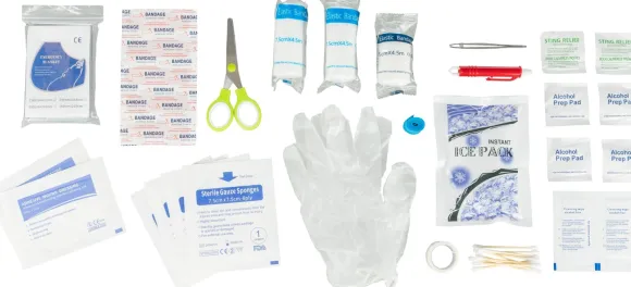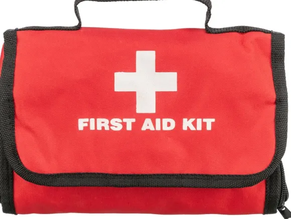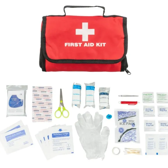 Kompakti ensiapulaukku, joka voidaan helposti kiinnittää tai ripustaa seinälle.