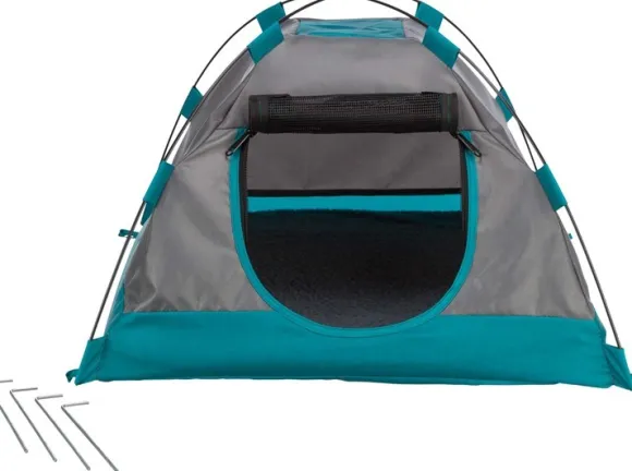 Sisäänkäynnin verkkopaneeli voidaan sulkea vetoketjulla, ja teltassa on myös takana ilmanvaihtoritilä. Koirateltta on helppo pystyttää ja pyyhkiä puhtaaksi. Mukana tulee kiinnityskoukut ja kuljetuslaukku. Trixie Hundtält – STRONG Edition on saatavilla kahdessa eri koossa.