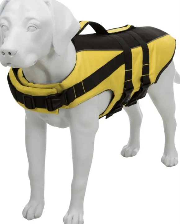 Trixien pelastusliivi koiralle turvaa koiraasi vesileikeissä sekä veneretkillä. Liivi istuu hyvin koiran päällä säädettävien solkien ja nylon-hihnojen ansiosta. Liivissä on D-lenkki hihnaa varten sekä selässä kahva, jolloin koiran käsittely on helpompaa. Keltainen väri ja heijastavat yksityiskohdat lisäävät näkyvyyttä. Anatomisesti muotoiltu. Valmistettu polyesterista.