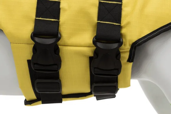 Trixien pelastusliivi koiralle turvaa koiraasi vesileikeissä sekä veneretkillä. Liivi istuu hyvin koiran päällä säädettävien solkien ja nylon-hihnojen ansiosta. Liivissä on D-lenkki hihnaa varten sekä selässä kahva, jolloin koiran käsittely on helpompaa. Keltainen väri ja heijastavat yksityiskohdat lisäävät näkyvyyttä. Anatomisesti muotoiltu. Valmistettu polyesterista.