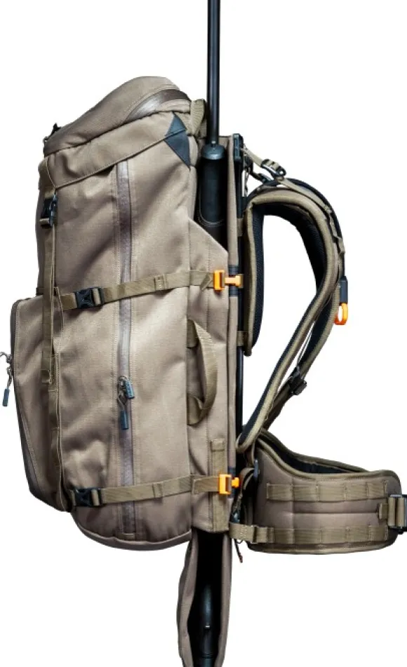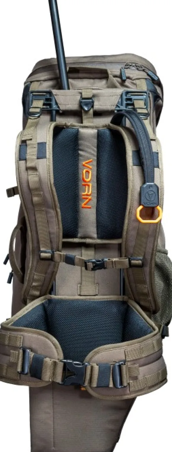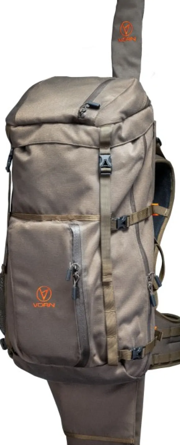 Vorn EV45:n tilavuus on 45 litraa ja se on EV-sarjan suurin reppu. Se tarjoaa runsaasti tilaa metsästysvälineille. Se on valmistettu kestävästä, hiljaisesta ja vettä hylkivästä materiaalista. Sivulla on aukko, josta pääset helposti käsiksi päälokeron tiivisteeseen. Kaikki vetoketjut ovat YKK™:sta ja ovat vettä hylkiviä PU-pinnoitteella.
