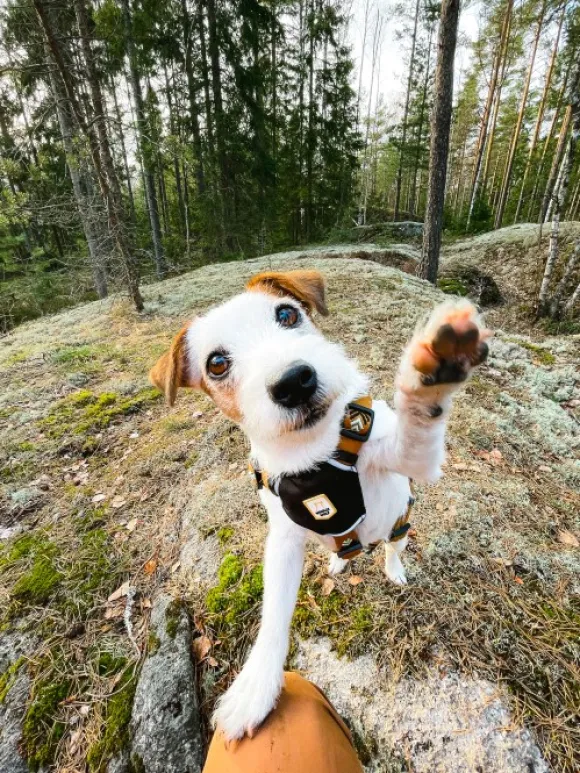 Kuten kaikki muutkin Woolly Wolf -tuotteet, valjaat on valmistettu kierrätetyistä PET-pulloista.